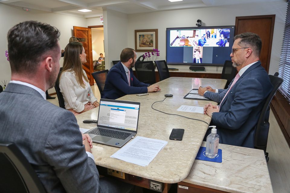 A assinatura ocorreu de forma remota, com o 1º vice-presidente da Assembleia, deputado Fernando Krelling (MDB), na Sala de Reuniões da Presidência da Alesc, e o desembargador João Batista Silveira, presidente do TRF-4, na sede do tribunal, em Porto Alegre (RS).