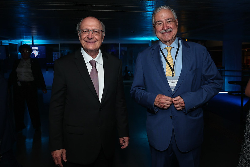 foto de capa>Geraldo Alckmin, vice-presidente da República, é recebido por João Saad, presidente do Grupo Bandeirantes. Crédito: Marcela Bussolotti