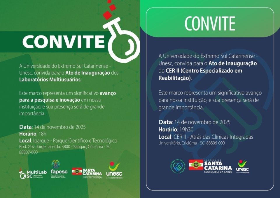 Essas inaugurações representam o fortalecimento da ciência, da inovação e da saúde, reafirmando o compromisso da Unesc com o desenvolvimento regional.