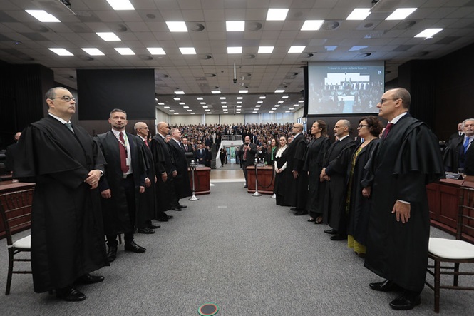 A sessão solene que marcou a posse dos novos integrantes da Corte foi realizada na Sala de Sessões Ministro Teori Zavascki, na sede do Poder Judiciário, em Florianópolis, com transmissão ao vivo pelo YouTube e presença de um grande público. Os novos integrantes do Tribunal foram recepcionados pelos desembargadores Luiz César Medeiros e Vitoraldo Bridi antes de prestar compromisso para o cargo e assinar o termo de posse.