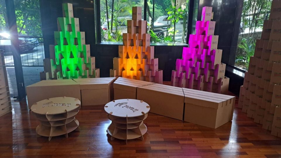 As soluções sustentáveis da Irani ganham aplicação prática no lounge do evento, com um conjunto de móveis que evidencia a versatilidade da matéria prima da empresa. Entre os itens estão mesas de centro, módulos de bancos, lixeiras para coleta seletiva e biombos personalizados, todos desenvolvidos com foco em funcionalidade, design e sustentabilidade. A iniciativa reforça o potencial do papelão ondulado em novas aplicações, alinhadas a tendências como economia circular e uso consciente de recursos.