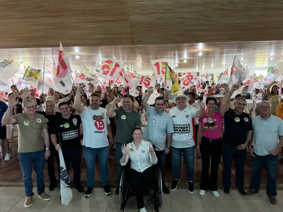 Deputado estadual licenciado e secretário da Infraestrutura e Mobilidade, Jerry Comper, liderou encontro regional do MDB no Médio Vale do Itajaí, sábado, no município de Gaspar. A presença de público superou todas as expectativas. Foram mais de 600 pessoas, reafirmando a força e a unidade do partido em de seus redutos mais tradicionais.