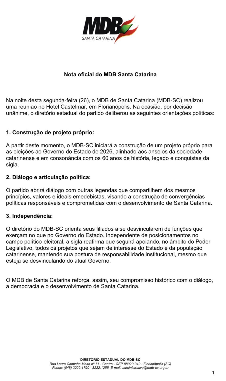 DestaquesMDB desembarca do governo Jorginho e acena com projeto próprio 26 de janeiro de 202626 de janeiro de 2026