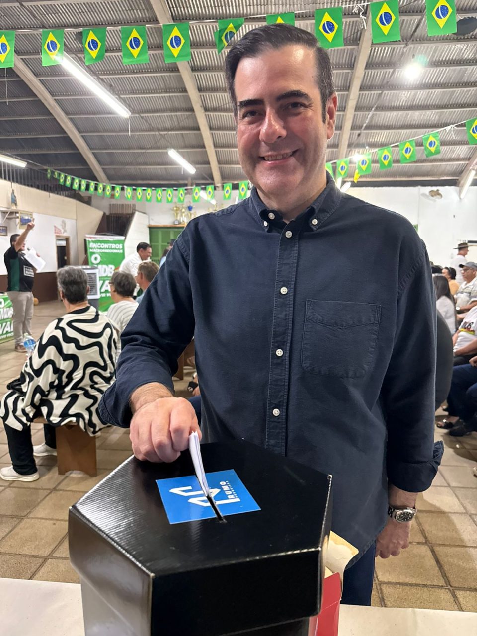 Durante o encontro, os filiados participaram de uma votação que busca medir o sentimento da base em relação aos caminhos do MDB na próxima disputa estadual. Na cédula, as opções incluem candidatura própria ao Governo do Estado, coligação com João Rodrigues indicando o vice, composição com Gelson Merisio também indicando o vice, ou ainda a possibilidade de o governador Jorginho Mello estando fora da majoritária.