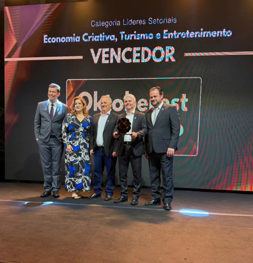 A 40ª edição da Oktoberfest foi histórica. Além de uma edição de celebração de um longo legado, ela continua a deixar a sua marca mesmo dias após o encerramento da festa. Nesta última quarta-feira, dia 5, a edição levou mais um prêmio que reconhece o seu impacto e inovação no mercado. O Prêmio Líderes do Brasil 2025 – Edição SC, o maior reconhecimento empresarial do estado, prestigiou a 40ª Oktoberfest Blumenau como destaque na categoria Economia Criativa, Turismo e Entretenimento.