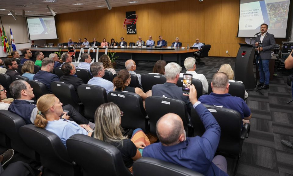 Na primeira reunião do ano da Associação Empresarial de Joinville (ACIJ), o prefeito Adriano Silva apresentou a palestra “Perspectivas para o desenvolvimento de Joinville em 2026”. O prefeito expôs as principais realizações de seu mandato e as importantes obras que estão em andamento.