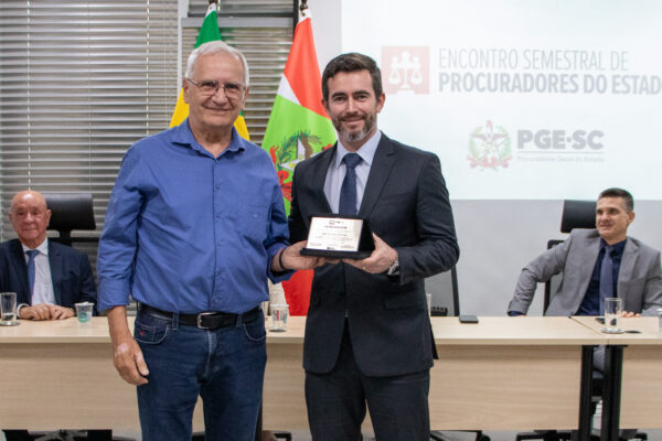 Durante a abertura do Encontro dos Procuradores foram homenageados os procuradores do Estado Osni Alves da Silva e José Hamilton Rujanoski – este, representado pela procuradora Bruna Bruening Pereira. Ambos aposentaram-se no ano de 2025. Eles receberam uma placa como forma de agradecimento e reconhecimento, pela PGE/SC pelos anos de dedicação e pelo legado deixado por eles para Santa Catarina.