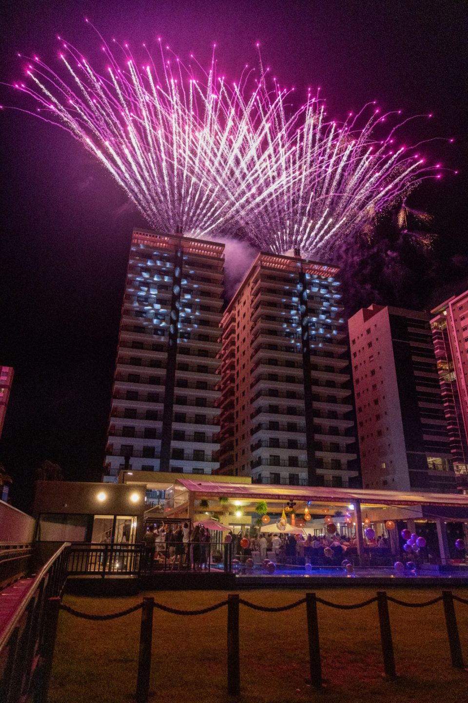 A entrega das chaves do Upside Home Club foi celebrada com um espetáculo de fogos de artifício, marcando de forma memorável a realização do sonho de desfrutar de lazer, conforto e sofisticação à beira-mar durante todo o ano.